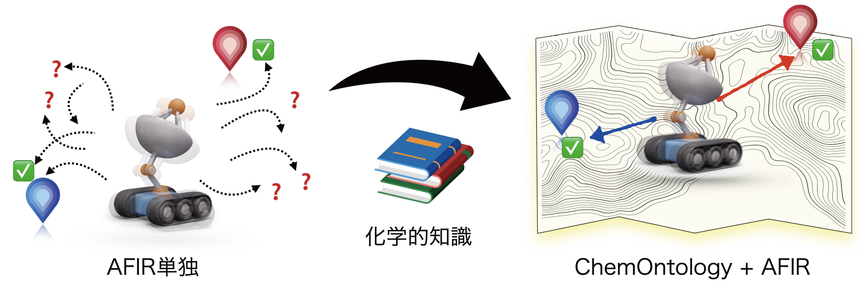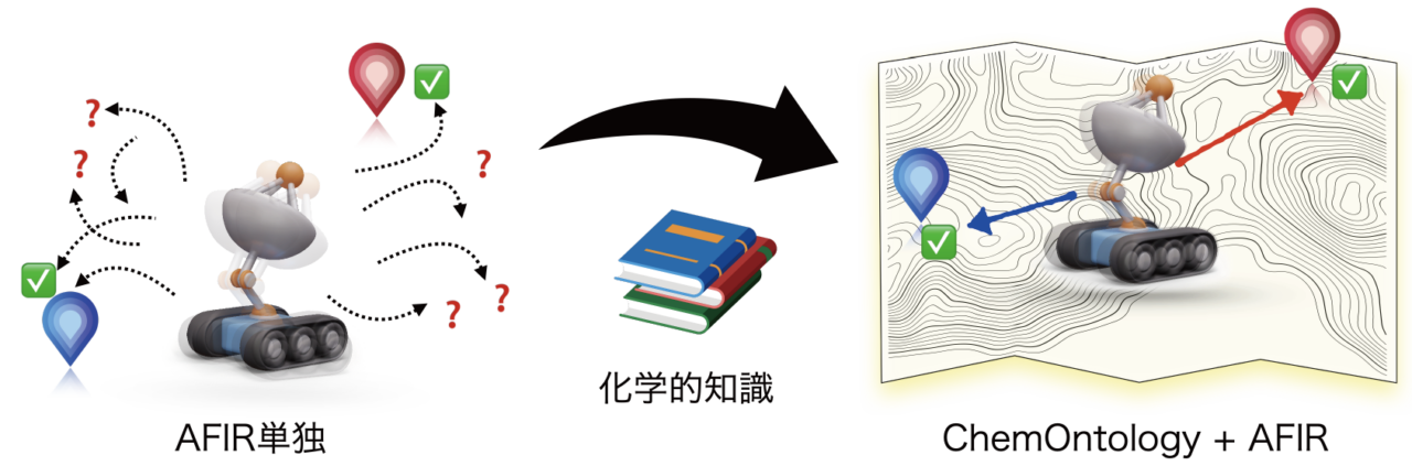 北海道大学総合イノベーション創発機構化学反応創成研究拠点(WPI-ICReDD)のナート・ピンク特任助教、同大学大学院理学研究院の小野ゆり子博士研究員、WPI-ICReDDの原渕 祐特任教授、山本靖典特任教授、WPI-ICReDD及び同大学大学院理学研究院の前田 理教授、武次徹也教授、WPI-ICReDD及び同大学大学院情報科学研究院の吉岡真治教授らの研究グループは、化学反応の進み方を予測するための新しい計算方法を開発しました。化学反応を調べる計算は非常に複雑で、これまでは膨大な数の候補を試行錯誤的に計算する必要がありました。本研究では、化学者の経験や判断基準を体系化することで、計算化学による反応経路探索手法である人工力誘起反応(AFIR)法を効率的に制御する知識システム「ChemOntology(ケムオントロジー)」を開発しました。この仕組みにより、計算は反応の「本命候補」に絞って行えるようになり、計算にかかる時間と労力を大きく減らすことに成功しました。今後、この技術は新薬や電池材料、触媒開発など、様々な分野で化学反応の発見や最適化を加速することが期待されます。