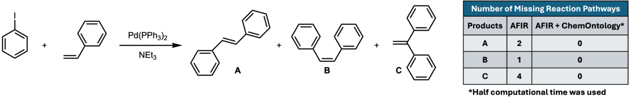 As a proof of concept, the researchers analyzed a classical and well-known process, a Heck reaction, using AFIR alone and in combination with ChemOntology. The Heck reaction mechanism involves several complex intermediates that can produce up to three major reaction products over 10 possible reaction steps, making it an ideal reaction to evaluate computational performance. “AFIR alone identified only partial pathways for the Heck reaction. Amazingly, AFIR with ChemOntology successfully discovered all the pathways in half the computational time!” said Assistant Professor Nath.